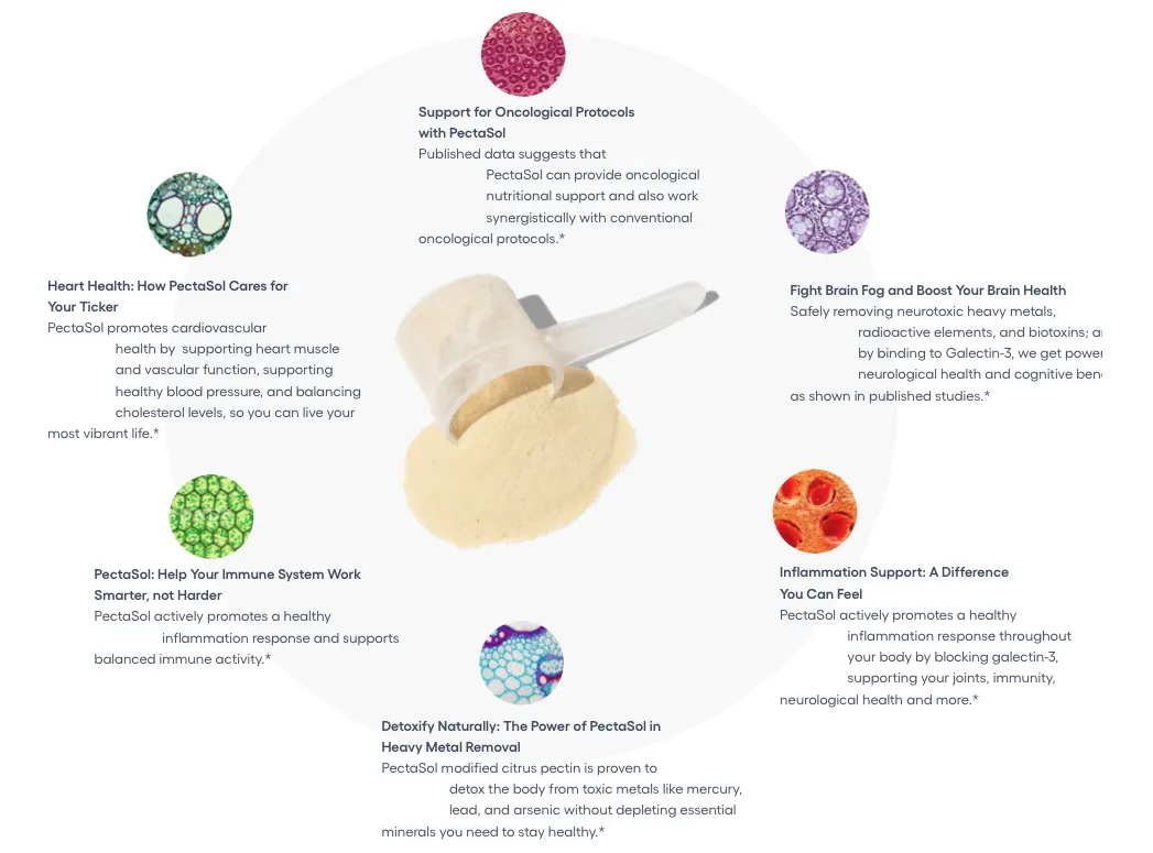 PectaSol-C is not your average citrusy powder. It’s the ONLY clinically proven, patented modified citrus pectin that detoxes on a cellular level. Think of it like a little Roomba for your body—quietly working behind the scenes, grabbing up toxic messes and escorting them OUT.